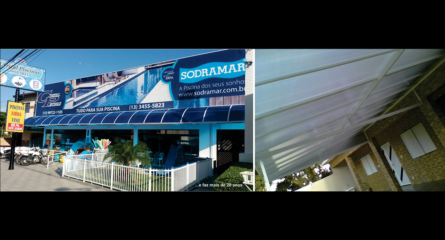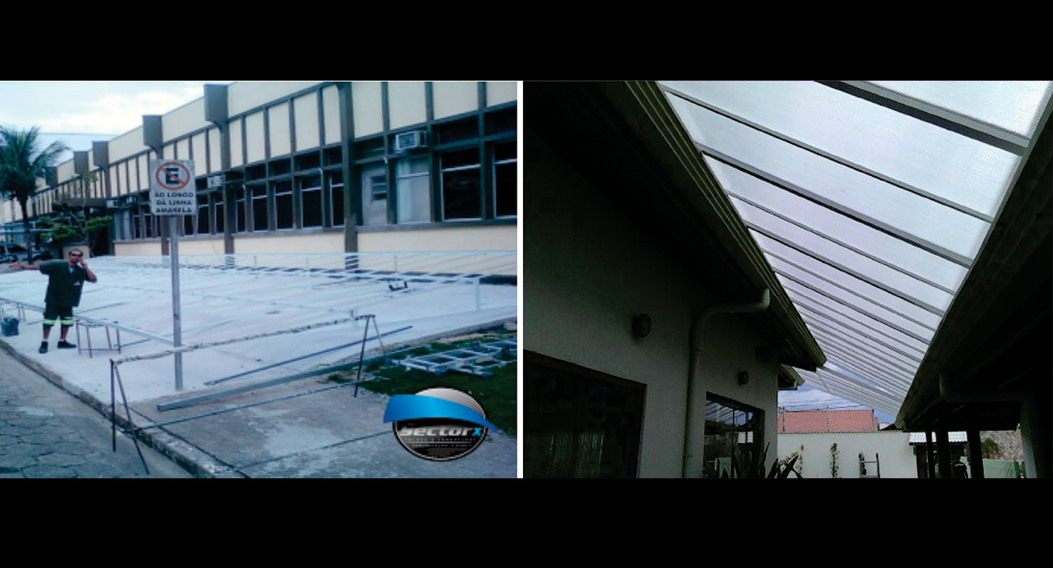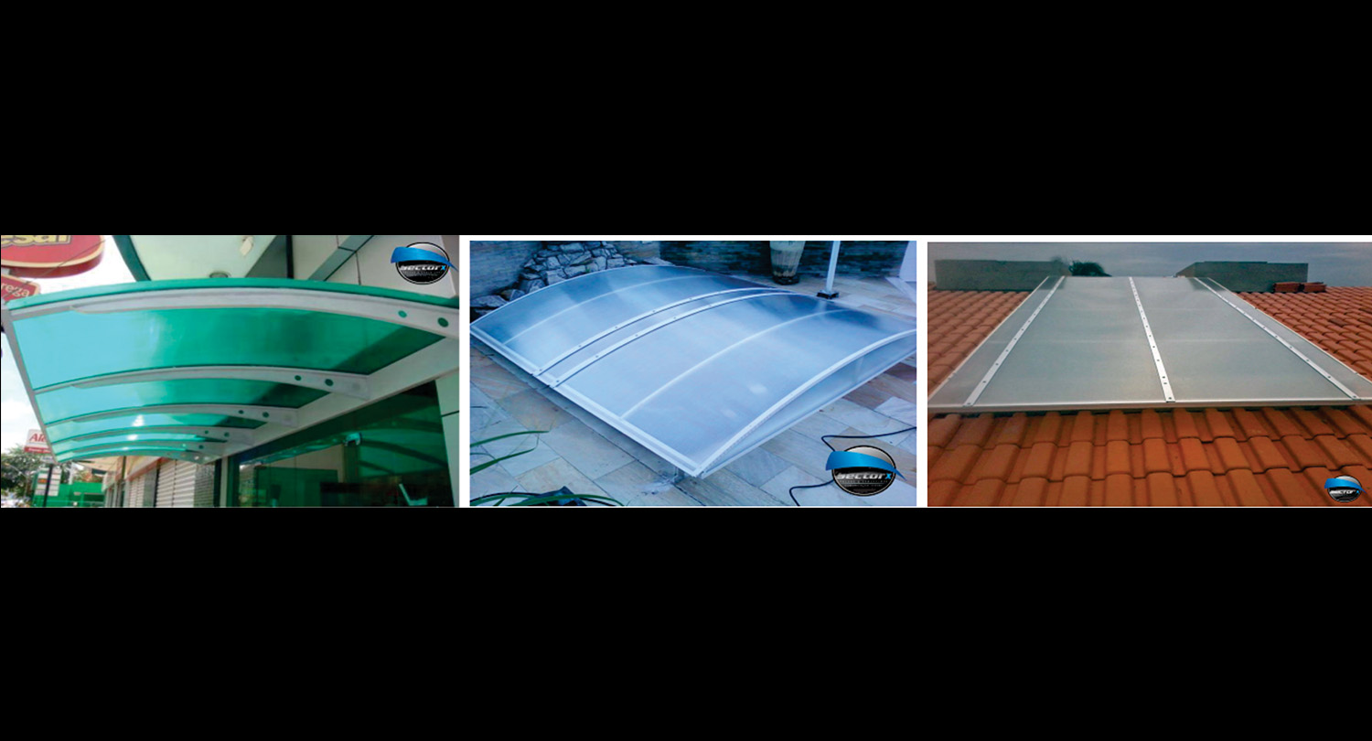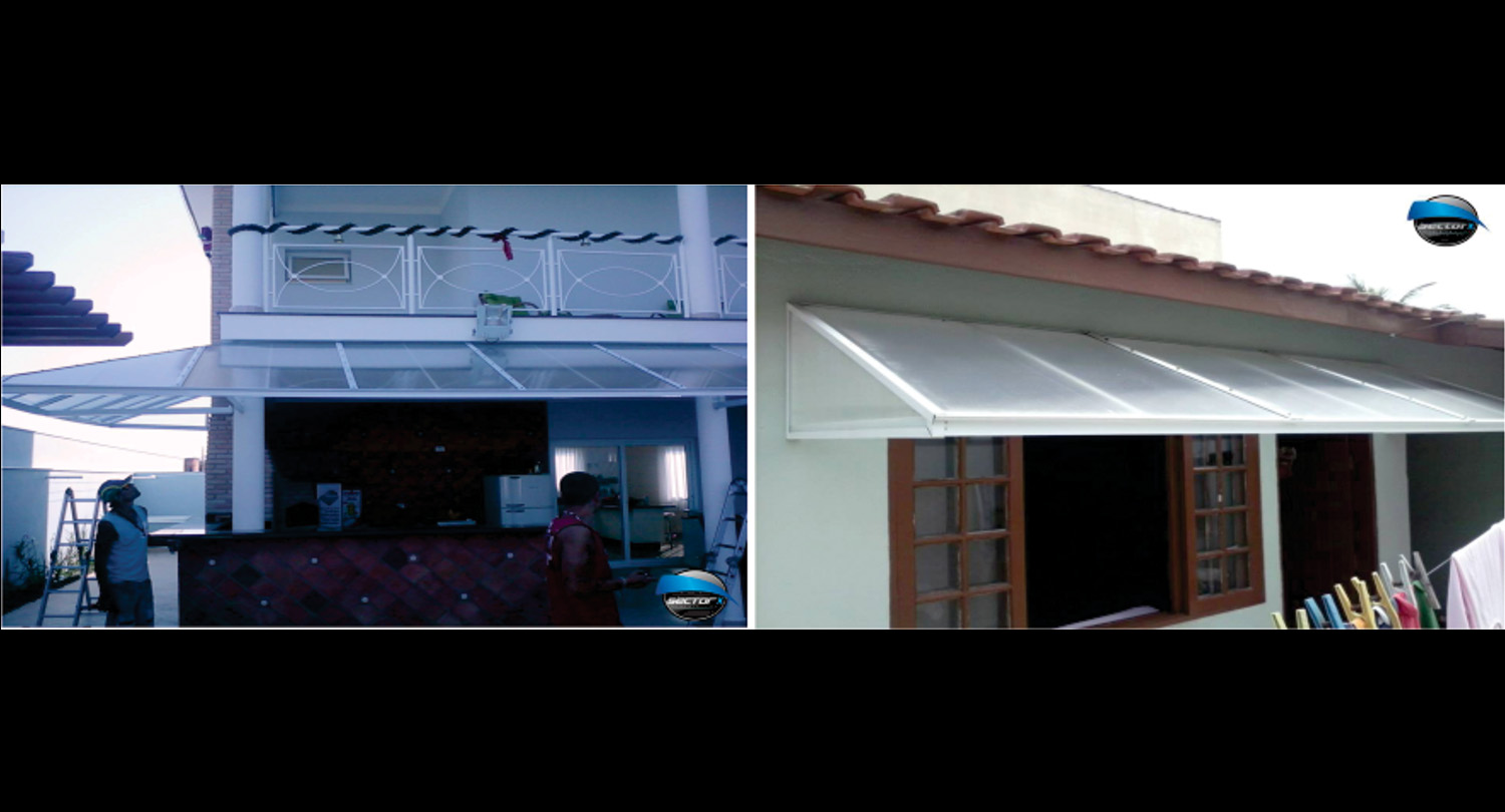 Toldos e coberturas com policarbonato alveolar.