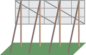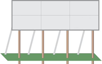 São painéis de rua com grandes estruturas de madeiras de sustentação, feitos em chapa galvanizada adesivadas ou em placas de ferro ou madeira com lona impressa ou de ferro ou madeira com lona impressa ou adesivada.
