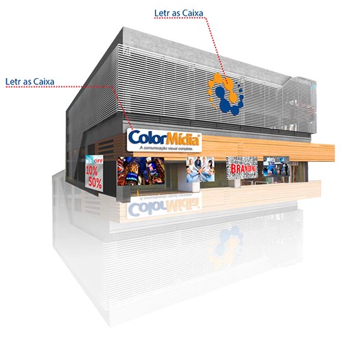 São placas de metal ou lona transparênte com ilumínação interna ou ACM com corte usinado formando o luminoso ou totem.